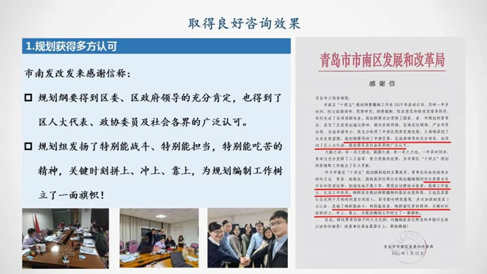 ﹡在各区市十四五规划汇总过程中,市十四五规划组在统筹各区市规划编制过程中评价:市南规划最规范、最系统,下了很大功夫!