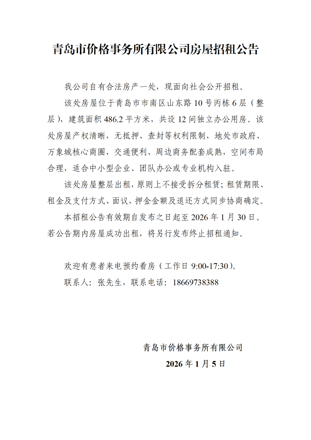 上一篇:青岛青咨物业管理有限公司公开处置闲置资产公告