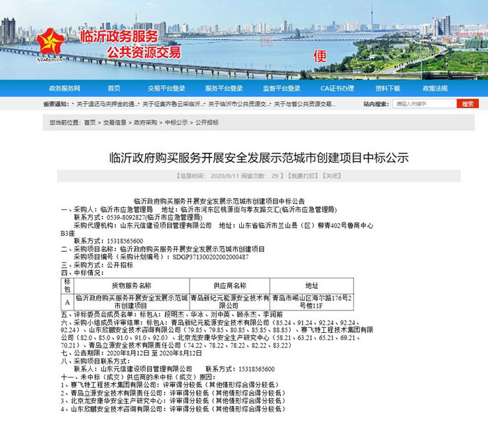 8月11日,我院新纪元公司中标《临沂政府购买服务开展安全发展示范城市创建项目》,公司单项合同额再创新高。