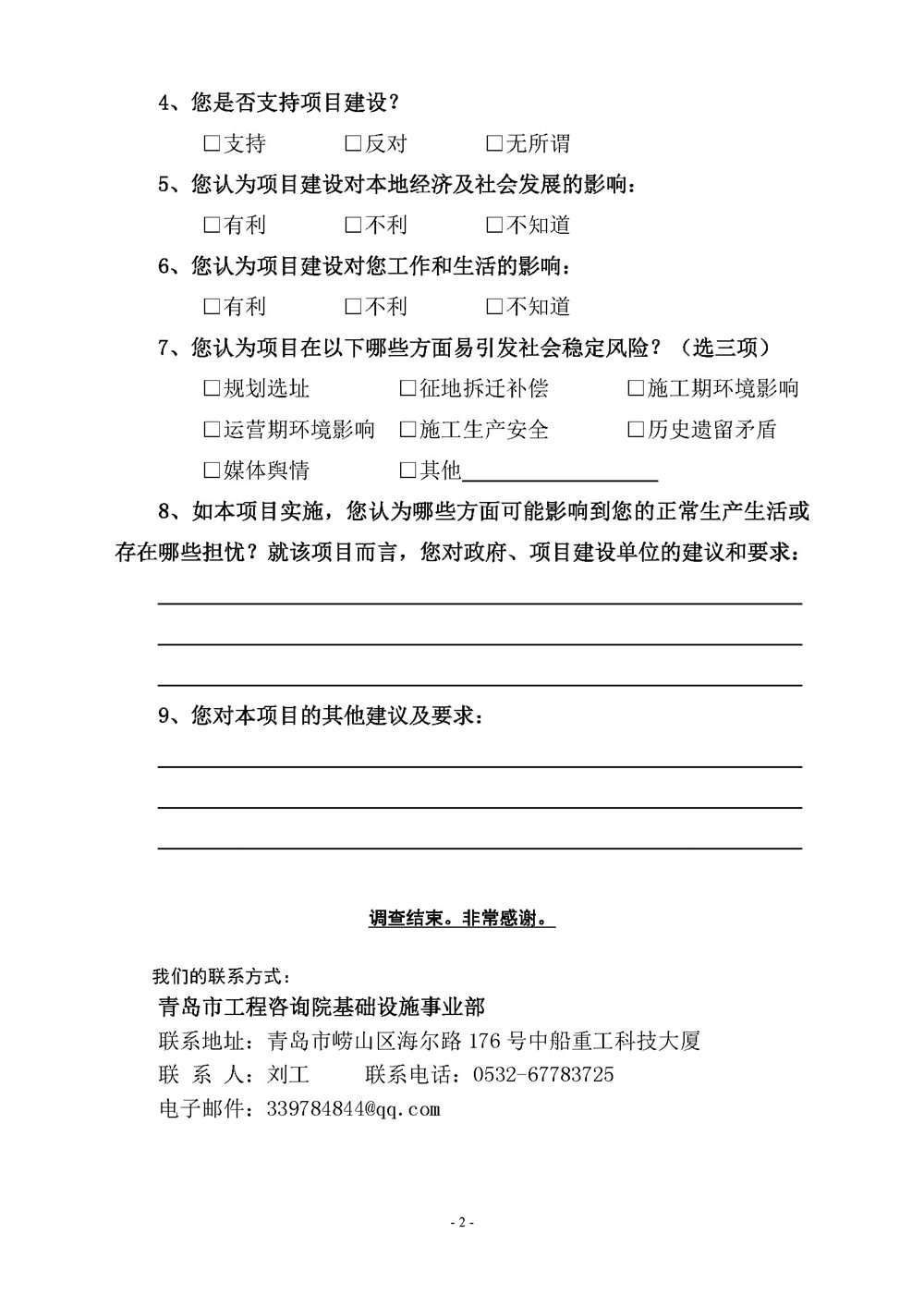 附件:青岛市地铁2号线二期工程(东段)公众参与调查问卷