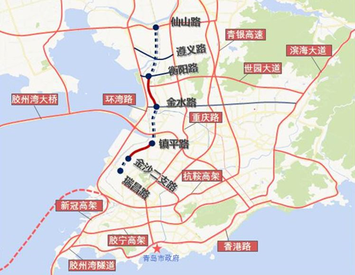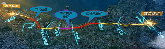 ﹡评审确定采用设小半径S弯下穿胶济货运铁路、青连铁路、青荣城际铁路、上跨娄山河方案。与比选方案对比:征地面积减少8700平方米,并充分利用了高铁的预留条件。