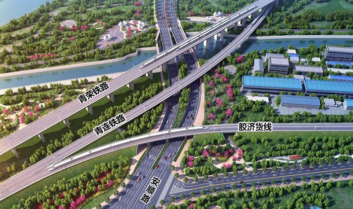 路线分别跨越6处河道,自南向北依次为水清沟河、李村河、娄山河、娄山后河、刘家宋哥庄河、洪沟河。全线共涉及5处铁路节点。其中下穿铁路四处,分别为下穿胶济货线、下穿青连铁路(两次)、下穿青荣铁路;上跨铁路一处,为上跨石化专线。