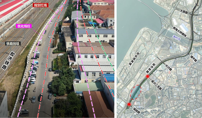﹡瑞昌路-金沙二支路段线位向铁路侧偏移3-10米,减少了道路东侧征拆面积1.1万平方米,实现了土地和经济效益的双赢。