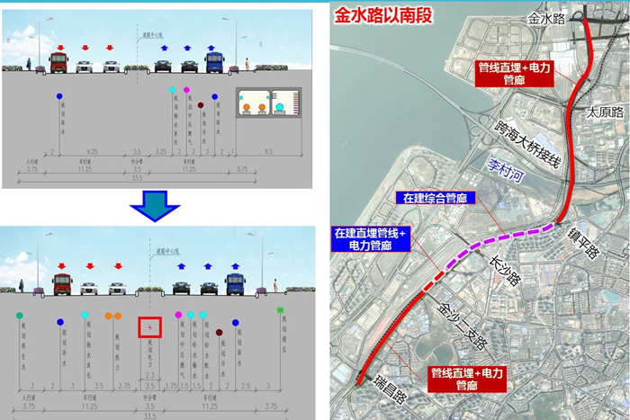﹡金水路以南段管线敷设方式由综合管廊方案调整为采用直埋方案。减少投资2亿元。