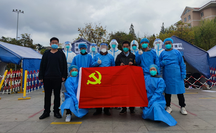 此外,为充分发挥党组织战斗堡垒作用和党员先锋模范作用,我院党委于11月8日成立疫情防控志愿者临时党支部,将支部扎在疫情防控最前沿,为打赢疫情防控阻击战提供坚强的组织保障,让党旗在疫情防控一线高高飘扬!