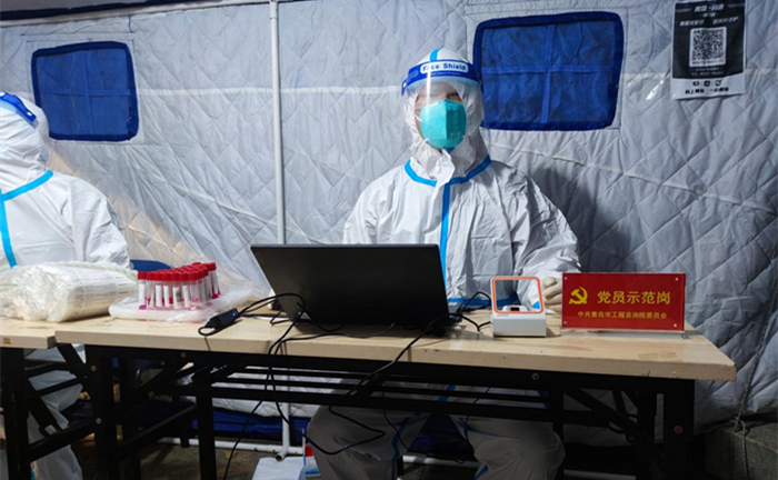 6日当晚,由20名职工(其中党员6名)组成的志愿者队伍便到市北区抗疫关键区域报到,迅速投入到海琴广场核酸检测站疫情防控工作中,义无反顾冲在战“疫”一线。