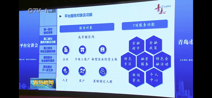 “青融通”平台是青岛市服务企业统一平台三大平台之一,由我院依托青岛市信用综合服务平台开发,整合了“信易贷”“融资通”“金农通”等相关部门融资服务平台,汇聚银行融资、股权融资、保险保障、融资担保、小额贷款、融资租赁、商业保理、典当8类融资资源和服务,可为企业提供“一站式”综合金融服务。下一步,我院将根据企业对平台的使用感受和意见建议,持续优化各项功能服务,推动“深化作风能力优化营商环境”专项行动向纵深发展。