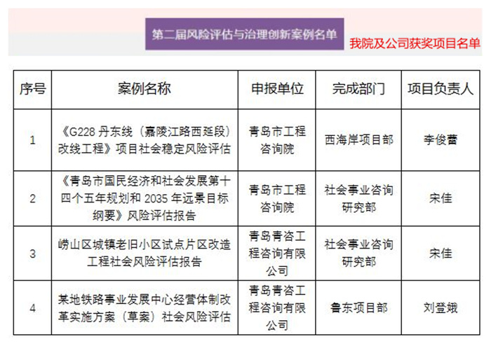 重大喜讯 | 我院及青咨公司4个项目入选第二届风险评估与治理创新案例名单
