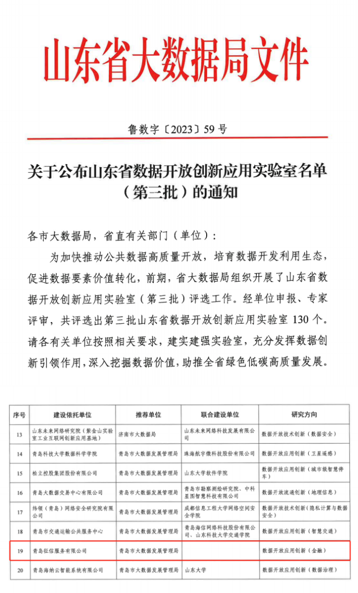 下一步,青岛征信将充分依托实验室,加强政务数据治理、数据应用和数据安全等方面的研究,充分发挥信用大数据在金融、政务、产业发展领域的创新引领作用,积极释放数据红利,助力数字强省建设。(完)
