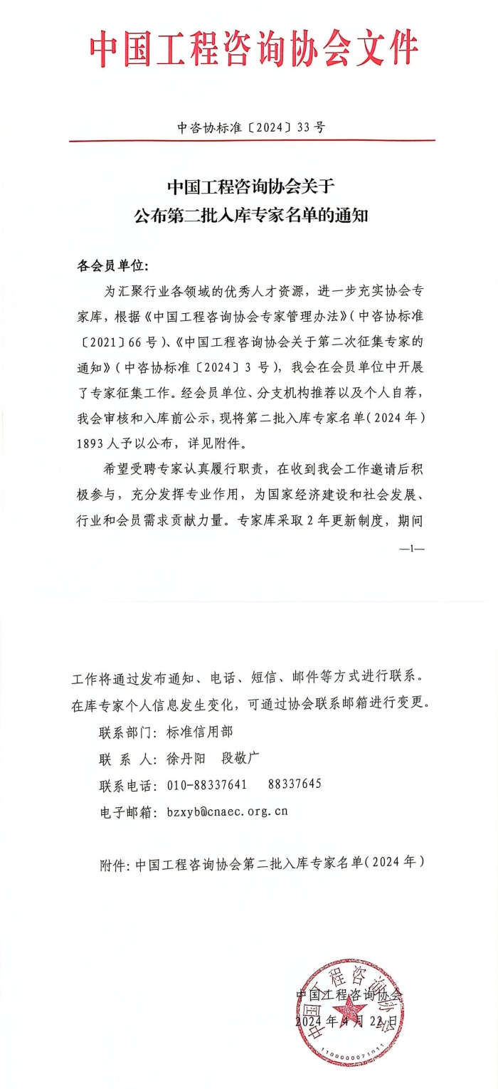 近日,中国工程咨询协会公布了第二批入库专家名单,我院张云峰、李兵、张涛、李华、刘红、郑云龙、王清波、周立民、羊晔、王洪申、孟庆波、刘广共12位同事入选,青咨公司王远、刘宾两位同事入选,彰显了我院及青咨公司作为经济领域专业智库的力量。此前,我院曲伟、黄文清、李洪书、青咨公司丁海洋四位同事曾入选中国工程咨询协会2022年入库专家名单。
