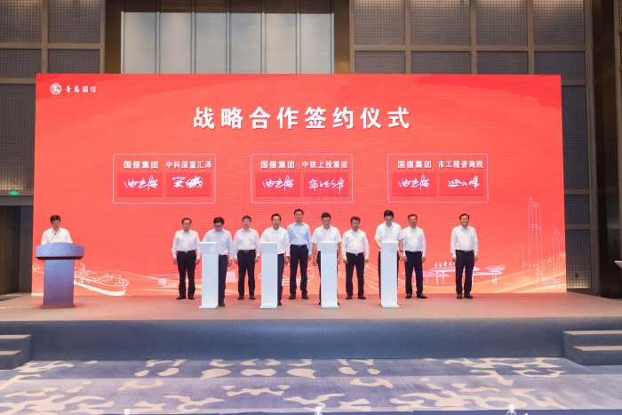 签约仪式由国信集团总经理姜鲁青主持,青岛市委常委、副市长王波,西海岸新区工委副书记、自贸片区管委主任高善武,市政府副秘书长陈万胜,市国资委党委书记、主任王孝芝,西海岸新区工委副书记、区长王清源,青岛国信集团党委书记、董事长刘鲁强共同见证了各方战略合作签约仪式。