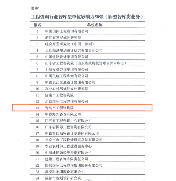 中国工程咨询机构排行榜受到了业界的广泛关注,对进一步推动行业品牌建设、规范行业行为有重要影响,为国际国内工程咨询界提供评价参考。(完)